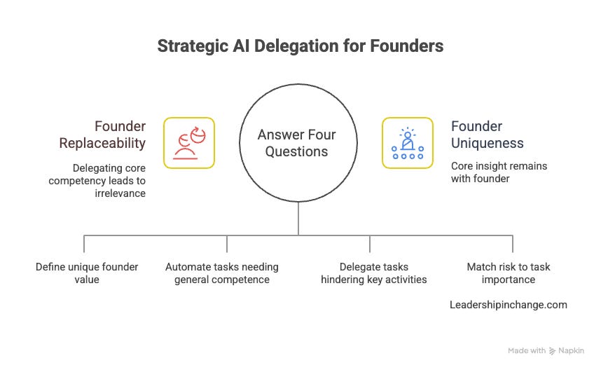The reason this matters is simple: if you delegate your core competency, you become replaceable. Iâve seen founders automate themselves into irrelevance because they couldnât articulate what made them uniquely valuable.