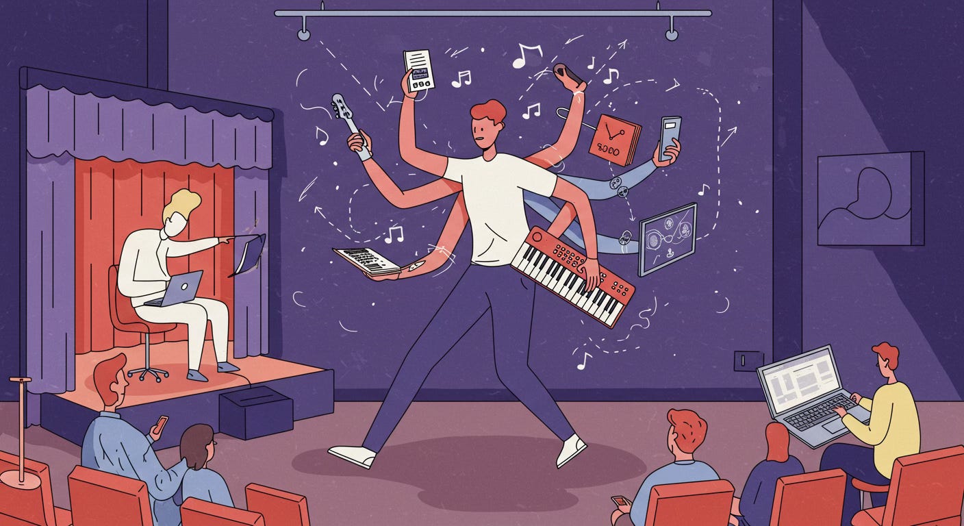 Another point worth making is that the transformation of the music business, as in any other tech-driven business, created a whole new set of adjacent businesses. Companies to make and service the computers, coders to write the software. The constant improvements to both the hardware and the software that were required. Fixing bugs and adding new features. Not to mention the market for large rolling racks to hold the gear, someone to manufacture floppy disks, design mouse pads, and build modems.